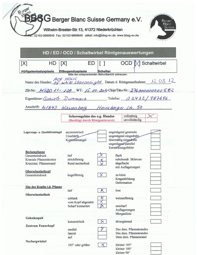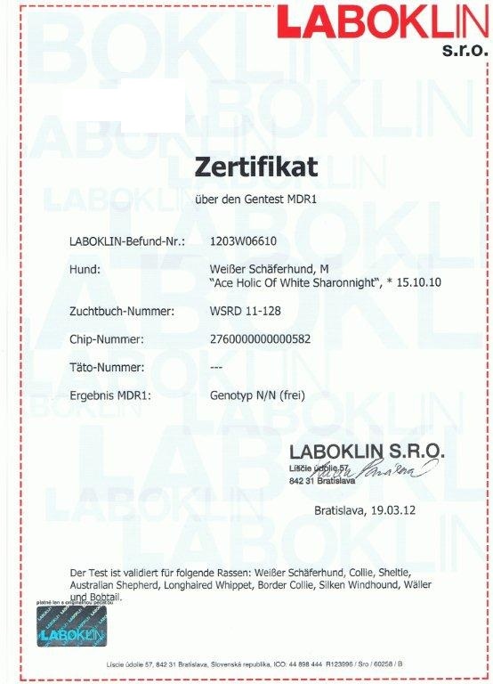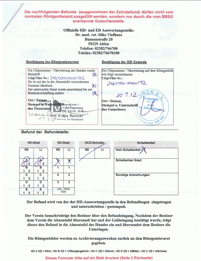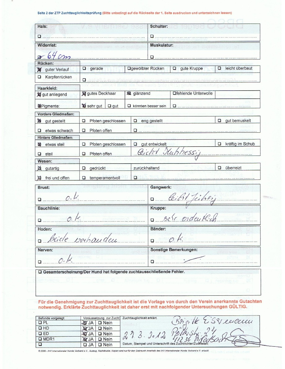 HD, ED, Patella, Schaltwirbel, MDR1 und MH getestet.
