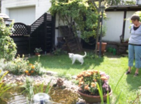 Pah, Garten, Gärtchen dann auch noch so ein Teich drin, na Ja mal sehen vielleicht macht Fische jagen auch Spass. Ich habe mal vorsichtshalber meine Marke hier und da gesetzt. Bevor ich es noch schlechter vorfinde nehme ich mal dieses Heim hier. Langsam wurde ich müde und nach einer kleinen Zwischenmahlzeit haben sie mir meinen Platz gezeigt. Irgendwie hat mich die Müdigkeit überrascht.
