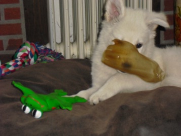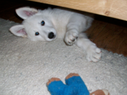 Ich liess mein neues Frauchen und neues Herrchen schmoren. Aber die waren genauso stur und brachten mich nicht zurück, nein wir gingen sogar schlafen. Am anderen Morgen nachdem ich sie in der Nach noch ein paar mal geweckt hatte, schien die Sonne und ich habe es mir auch überlegt. Nur Protest hilft mir nicht, ich werde mich schon daran gewöhnen. So schlecht sind hier alle nicht, sie versuchen es alle mir ganz gemütlich zu machen und spielen auch viel mit mir.