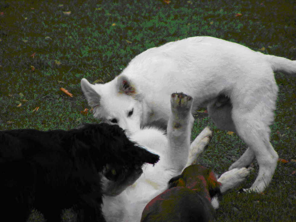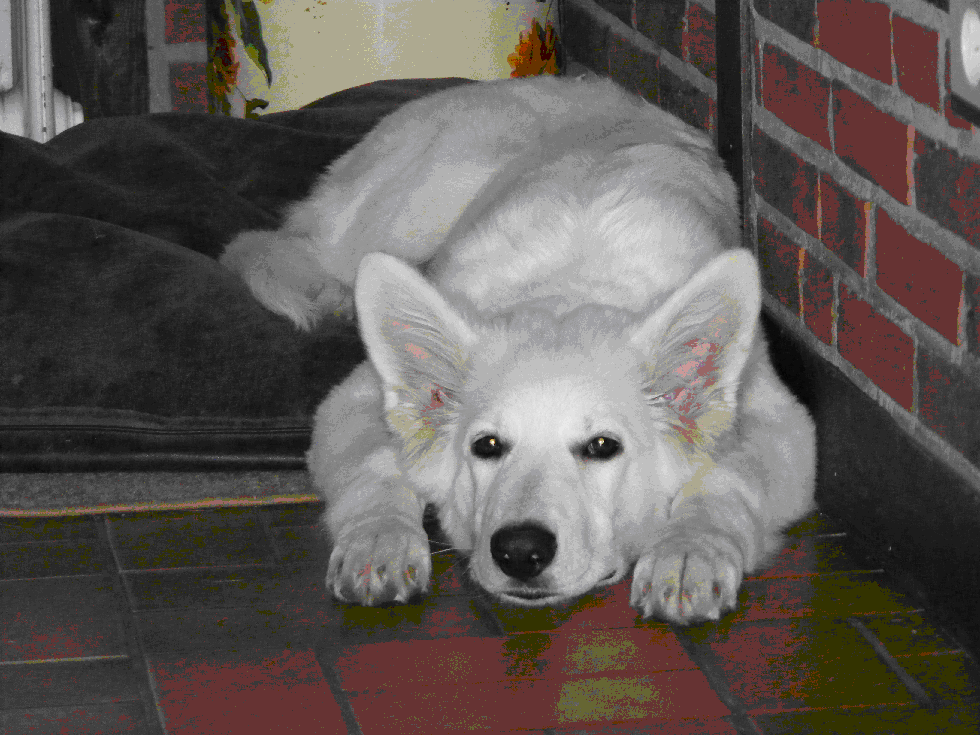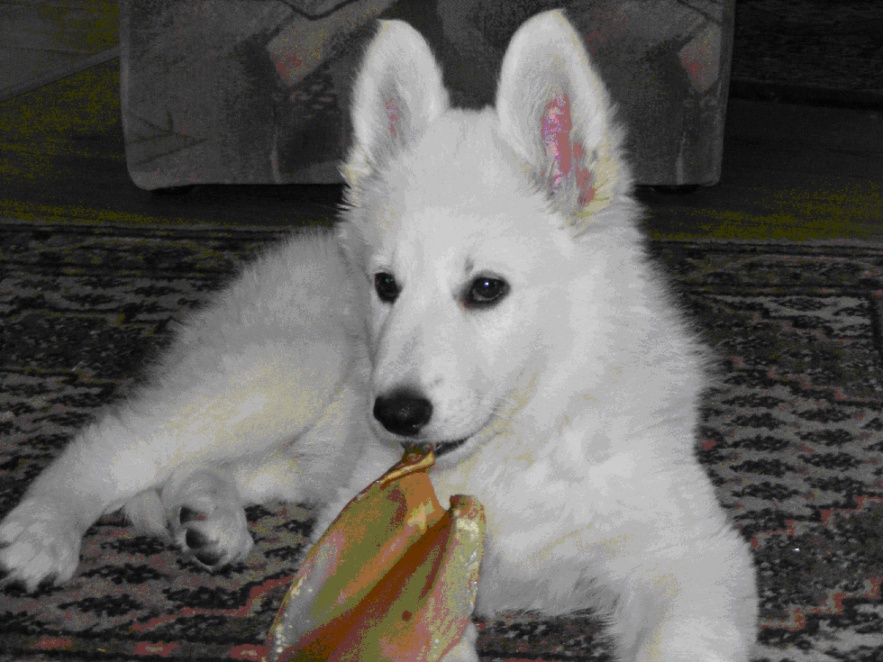 draussen in der Freiheit. Erinnert ihr euch noch an mich. Also so sieht es nun aus. Sieben Monate bin ich jetzt alt und was habe ich bisher gehabt, nichts als Stress. Weit weg der Heimat, Hallo Mama Anouk, Papa kenn ich nur von den Bildern, Hallo Bella, Hallo Bailey Joy, Hallo Baghira Tinkerbell, Hallo Bolt-Barney, Hallo Buzz-Lothians und natürlich Barkley Dream du alter Träumer, aber als solchen habe ich dich allerdings nicht in Erinnerung. Ich hoffe es geht Euch allen gut und ihr habt es besser angetroffen wie ich hier. Immer haben die anderen zu sagen und ich soll gehorchen, brav sein, nichts zerstören und dann immer nur von allen Fremden: „ Aach ist der süss, schau mal ein Eisbärhund, nein, den könnte ich knuddeln, guck mal wie schön der PiPi macht ( als ob das nicht egal wäre, wenn ich muss dann muss ich und achte nicht darauf ob es auch schön ist. Ja, ja es ist schon ein Kreuz mit der lieben Verwandtschaft und jeder will etwas zu sagen haben. Aber da muss doch auch, wenn ich es nicht will, meine menschlichen Zwangseltern loben. Sie nehmen mich immer aus dem Feuer und stellen sich dann vor mich, bildlich gesprochen. Na ja, soweit es das angeht habe ich es einigermassen gut getroffen.