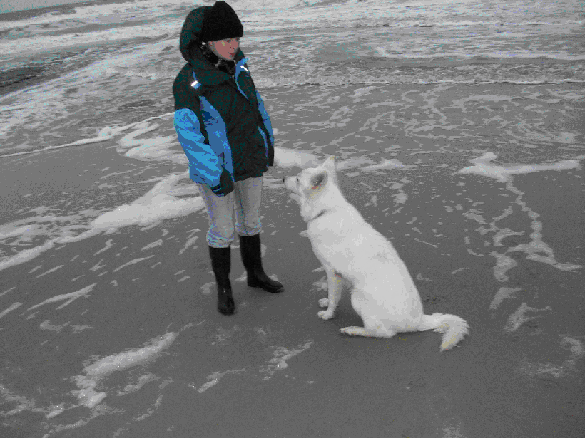Seht ihr, jetzt soll ich demnächst mit Messer und Gabel essen, im Moment wird ständig geübt., sogar im Weihnachtsurlaub an der Küste.