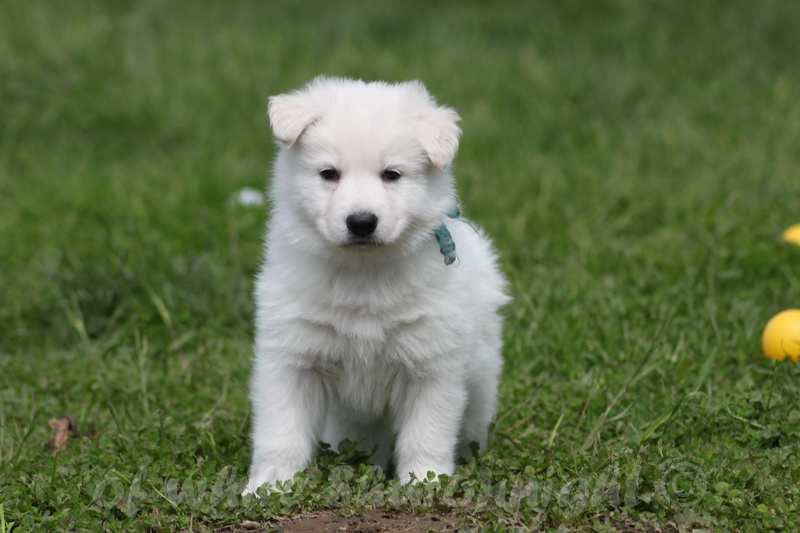 Anouk, Oma der süßen Racker. Naja Ayasha kannte sie ja schon, aber ich- für mich war es das erste Mal und ich muss sagen, sehr sehr nett. Sie hat uns gestreichelt und gesagt, dass wir gut sozialisiert seien, weil eine Aussi-Dame gleichzeitig zu Besuch war und auch die Babys beschnuppern durfte und wir sie nicht wie sie sagte ``in der Luft zerfetzt`` hätten. Versteh ich gar nicht, später hatten wir ja auch gemeinsam mit Erna- so heißt sie- Pute gegessen. Sie scheint ganz nett zu sein, nur weiß sie aber nicht so recht ob sie eines meiner Babys adoptieren sollte. Unsere Praktikantin Saskia ist super nett, sie hilft morgens die Meute zu füttern die Betten zu lüften und dann spielt sie, wenn alle gekämmt sind mit uns allen, auch wald- und wiesentauglich ist Saskia, aber der Wald wimmelt vor Zecken so dass wir im Moment nicht mehr dahin sollen. Was soll´s so geht es nur noch an die Rur hindurch den Feldern ..und wenn keiner guckt springe ich mal schnell rein um mich abzukühlen. Nun weiß Frauchen auch wer wohin geht - also die Auswahl finde ich echt klasse, sie kann unsere Nachzucht gut einschätzen und da die Besucher immer wieder nach uns schauen passt das alles, Frauchen beobachtet immer wieder was wer macht, und macht sich hin und wieder Notizen –die ich leider nicht lesen kann, hoffe nicht das dies eine Liste mit Strichen ist, wer besonders lieb war oder aber wer schlecht hört. Meine Tochter Bailey- Joy war dies Woche beim Arzt und wurde geröngt wenn ich es richtig verstanden habe soll sie auch mal Mama werden, und das bei uns.. freu mich auf die Zeit - dann kann ich wieder Welpen hüten – ganz ohne vorher meine Figur zu ruinieren! So lässt es sich doch leben JDie Kleinen werden nun immer größer – und frecher. Sehr aufmerksam wird das kommen und gehen von allem, was sich bewegt, beobachtet – manchmal auch kommentiert. Der blöde Kater Speedy stolziert manchmal lässig am Zaun entlang. Meine Enkelchen sind sehr neugierig, würden gerne mit ihm spielen oder ihn zumindest beschnuppern. Aber nein, dazu ist sich der Herr noch zu fein. Auch unsere Küsse, die wir ihm im vorbei gehen geben, sind als Bestechung nicht ausreichend.. So wird eben gemoppert, wenn er sich mal blicken lässt. Naja, da bin ich ja mal gespannt, was die kommenden Wochen noch bringen werden.. Ich muss nun schnell los, wir wollen einen Spaziergang machen.. Bis bald