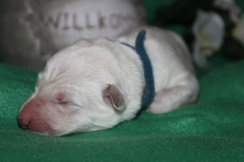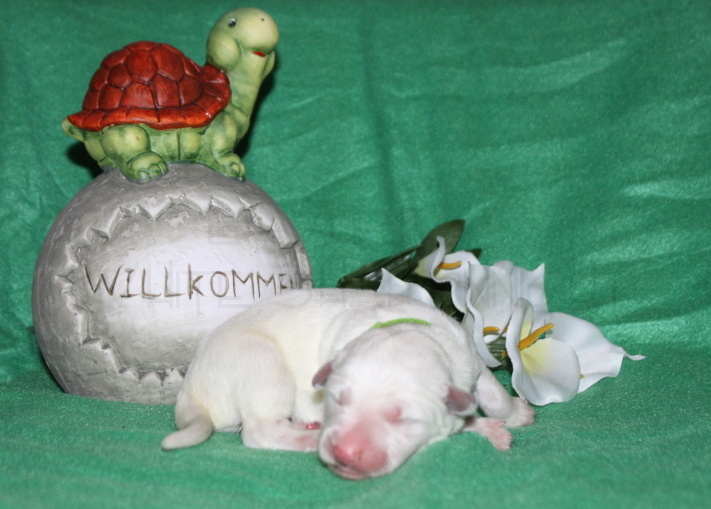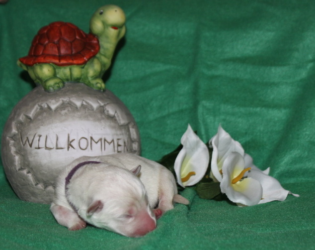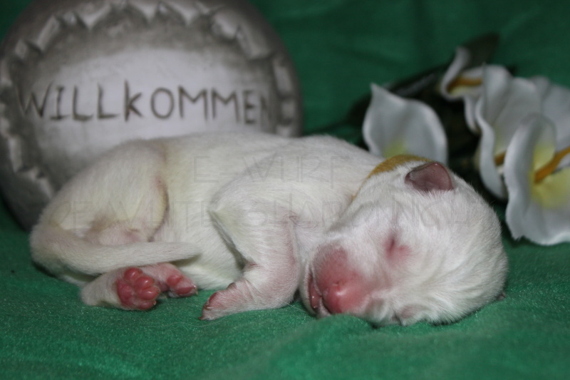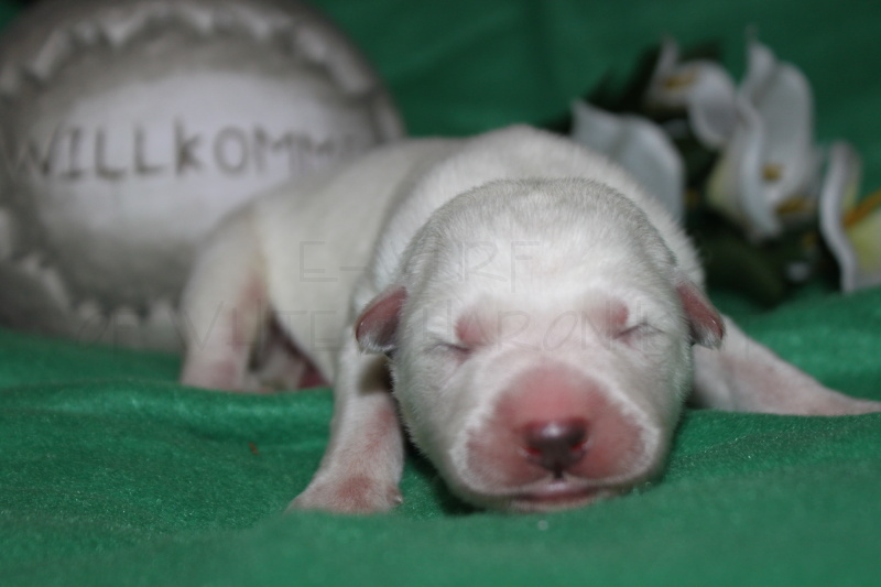 Die erste Lebenswoche ist geschafft…. Anouk´s jecke Bande hat die 1. Woche mit Bravour hinter sich gebracht, immer wieder beweist Sie uns, dass Sie eine Hundemami mit viel Herz und Sachverstand ist. Ihr geht es sehr gut und sie ist mit der Situation Mami zu sein überglücklich, auch den 8 Mäusen, die noch aussehen wie kleine weiße Meerschweinchen sind zu jeder Zeit satt und zufrieden.