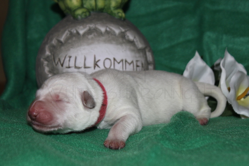 naheliegende Feld hinter unserem Haus zu begehen. Ace-Holic ist zur Zeit bei seiner Pflegefamilie und Herr der vielen Katzen, was ihm besonders gefällt. Ihm geht es ebenfalls prächtig er füllt das Haus mit Leben, wenn Katze hinter Hund oder umgekehrt herjagen, liebt es abends mit Biggi und Ralf auf der Couch fernsehen zu schauen. Wir jedoch freuen uns wenn er wieder daheim bei seinem Rudel ist und seine neuen noch für ihn unbekannten Halbgeschwister kennen zu lernen. So, das wäre es in kürze gefasst für die erste Woche der Sharonnight-Babys, wöchentlich werden sich die Berichte steigern. Noch etwas bzgl einer anderen Herzens-Angelegenheit
